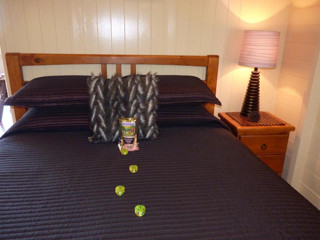 This cottage features a queen bed, double sofa bed, double spa bath, private deck, separate kitchen, and beautiful views across to the cattle yards and the mountain. Upon arrival, guests receive free chocolates and 70 grams of Coffeeworks coffee.